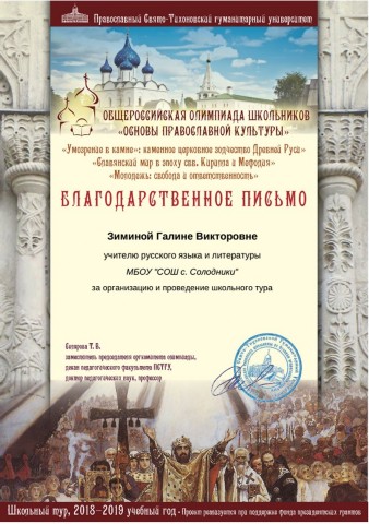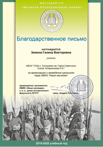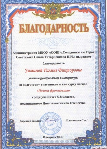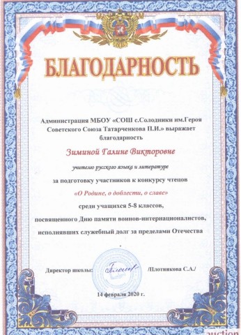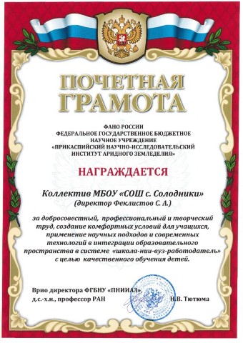 МКОУ «СОШ с. Солодники им. Героя Советского Союза Татарченкова П.И.»
